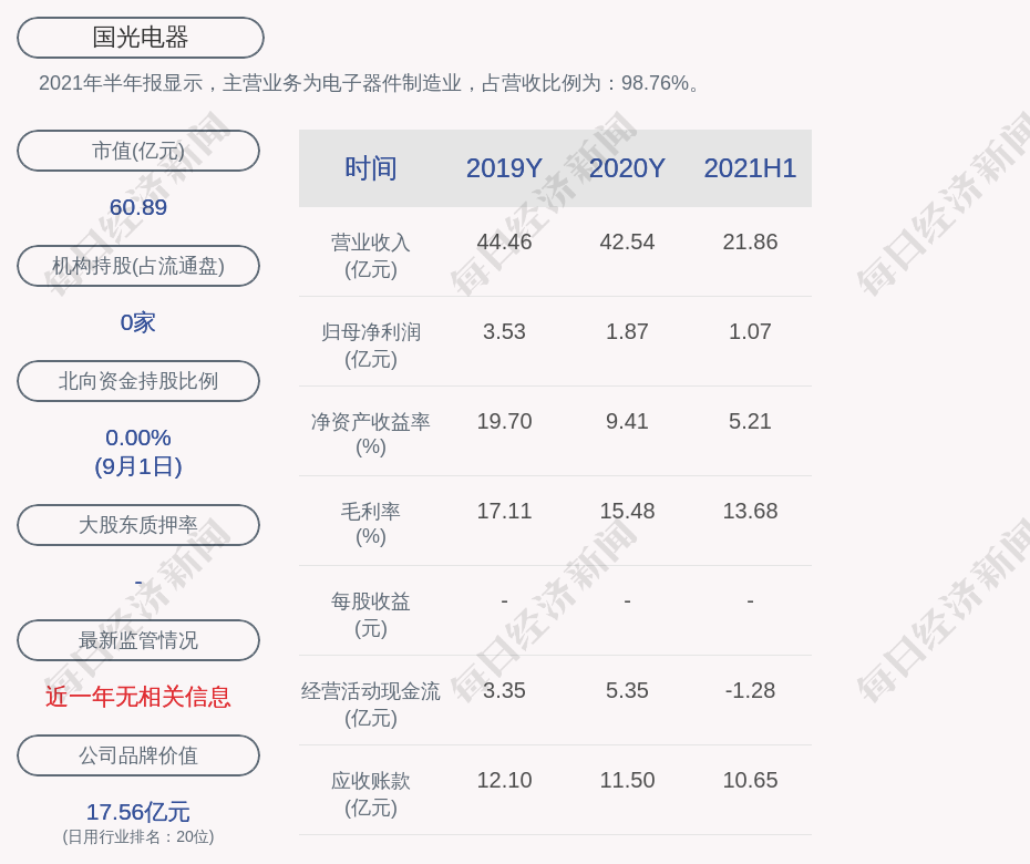 2021年半年報(bào)顯示,國(guó)光電器的主營(yíng)業(yè)務(wù)為電子器件制造業(yè)。