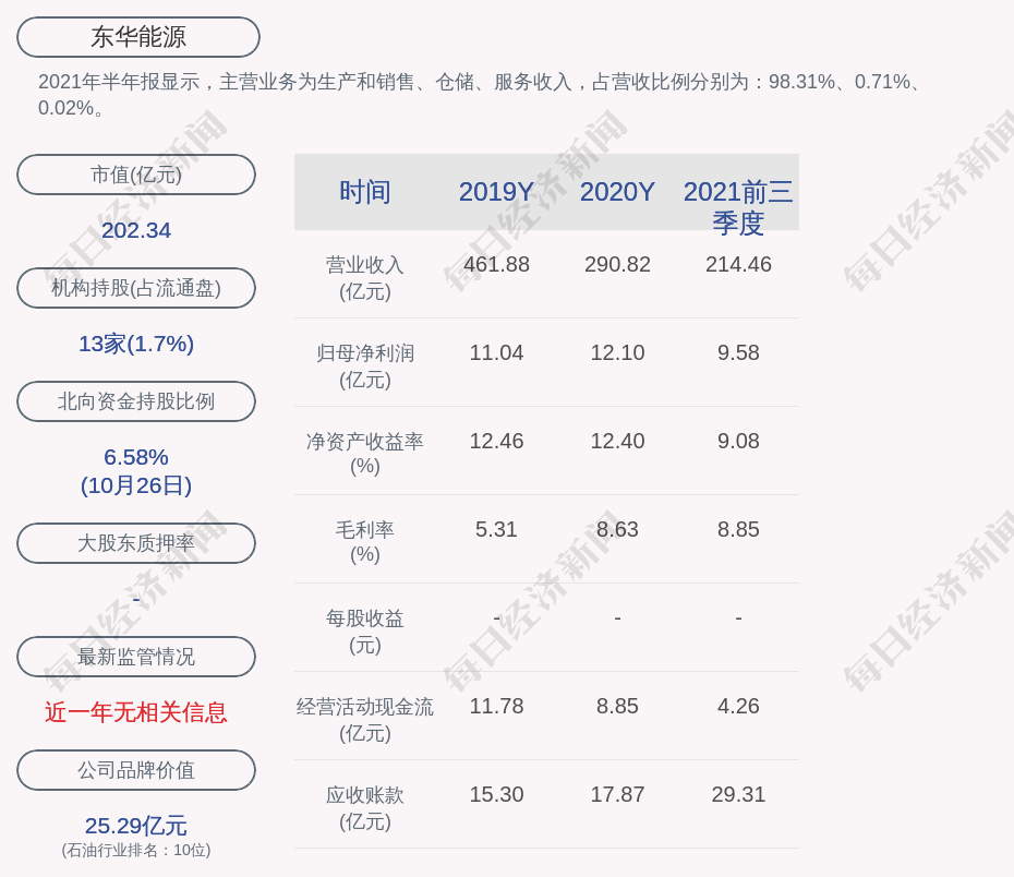2021年半年報顯示,東華能源的主營業(yè)務(wù)為生產(chǎn)和銷售、倉儲、服務(wù)收入,占營收比例分別為:98.31%、0.71%、0.02%。
