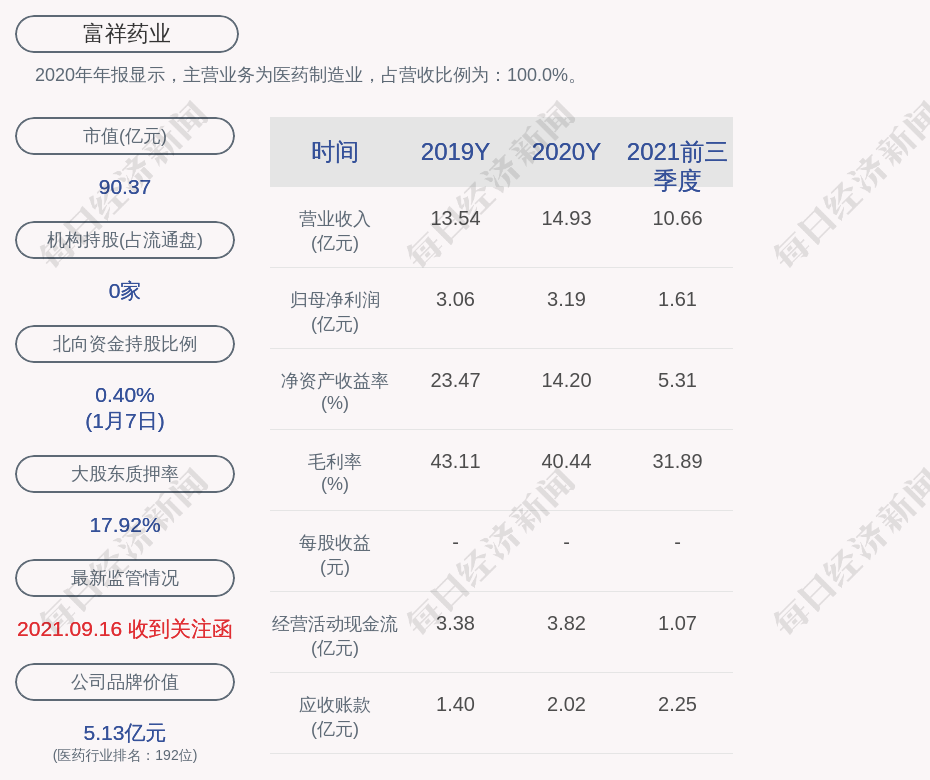2020年年報(bào)顯示,富祥藥業(yè)的主營業(yè)務(wù)為醫(yī)藥制造業(yè),占營收比例為:100.0%。