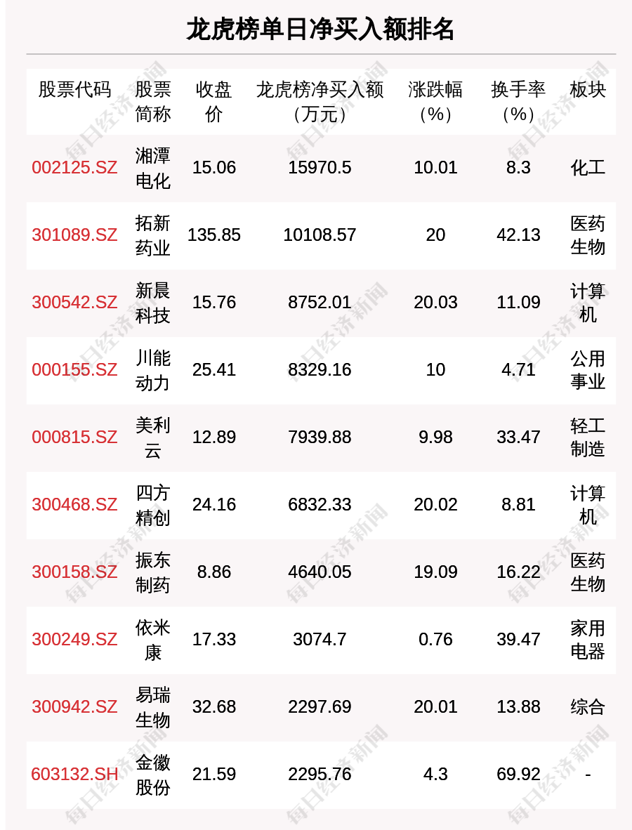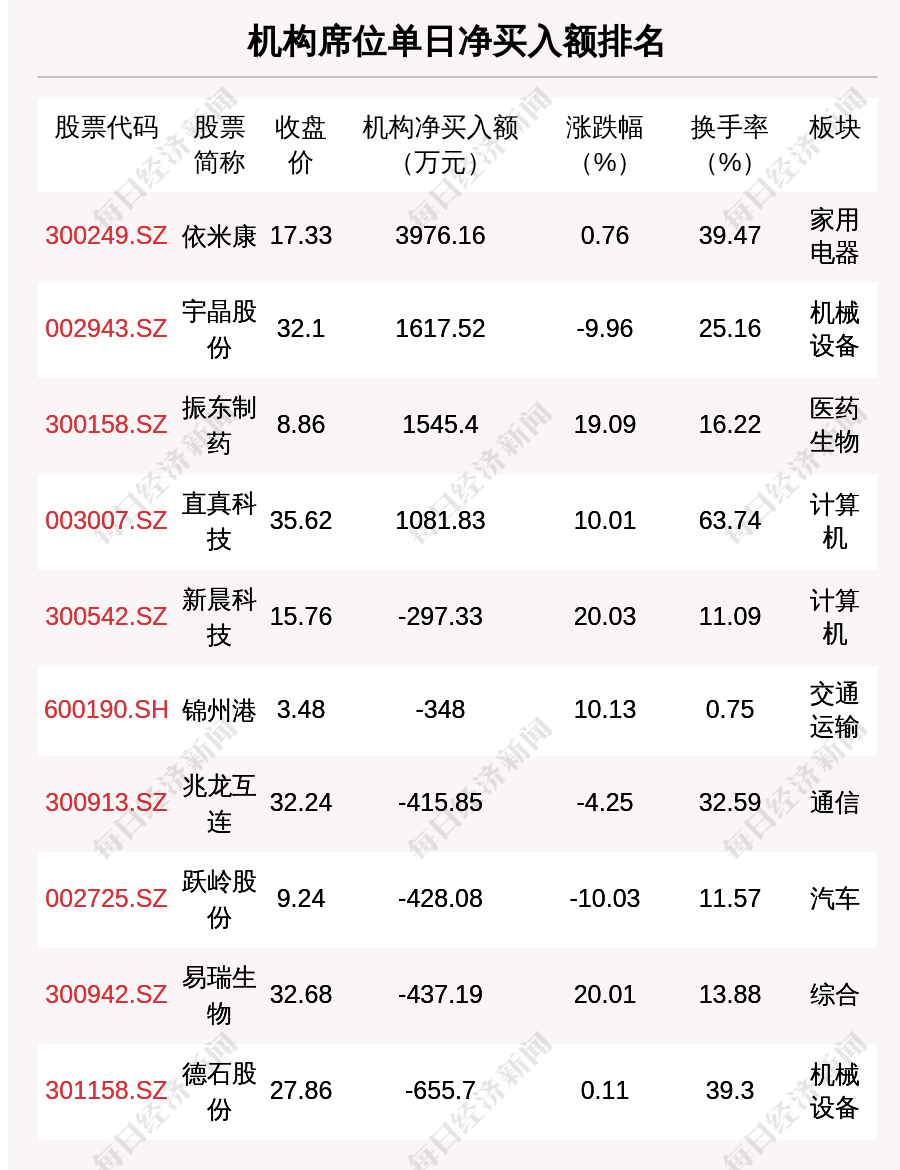 在龍虎榜中,涉及機(jī)構(gòu)專用席位的個(gè)股有17只,凈買入額前三的是依米康、宇晶股份、振東制藥,分別為3976.16萬元、1617.52萬元、1545.4萬元。