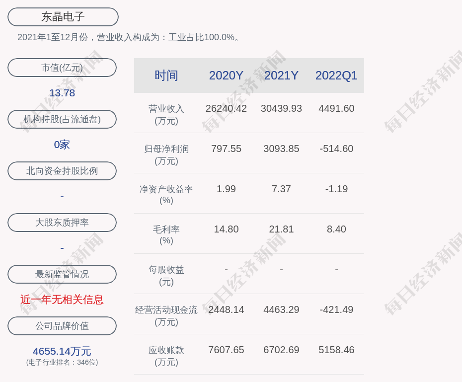 2021年1至12月份,東晶電子的營業(yè)收入構(gòu)成為:工業(yè)占比100.0%。