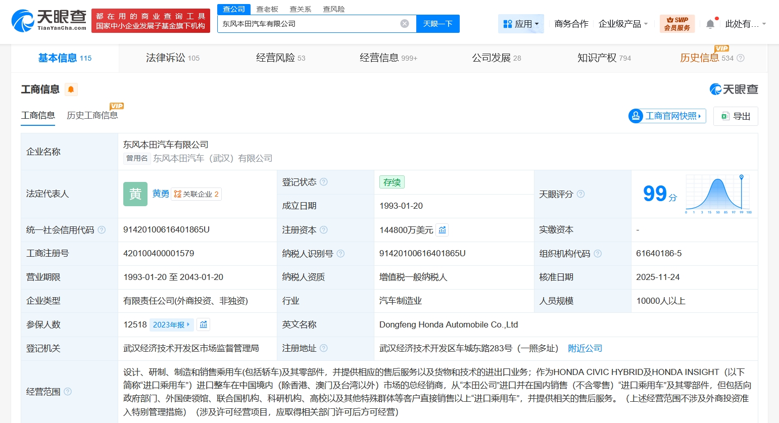 每經(jīng)AI快訊,天眼查App顯示,近日,東風(fēng)本田汽車有限公司發(fā)生工商變更,張祖同卸任法定代表人、董事長,由黃勇接任,同時多位高管均發(fā)生變更。該公司成立于1993年1月,注冊資本14.48億美元,經(jīng)營范圍含設(shè)計、研制、制造和銷售乘用車及其零部件,并提供相應(yīng)的售后服務(wù)以及貨物和技術(shù)的進出口業(yè)務(wù)等。股東信息顯示,該公司由東風(fēng)汽車集團股份有限公司、日本本田技研工業(yè)株式會社、本田技研工業(yè)(中國)投資有限公司共同持股。
