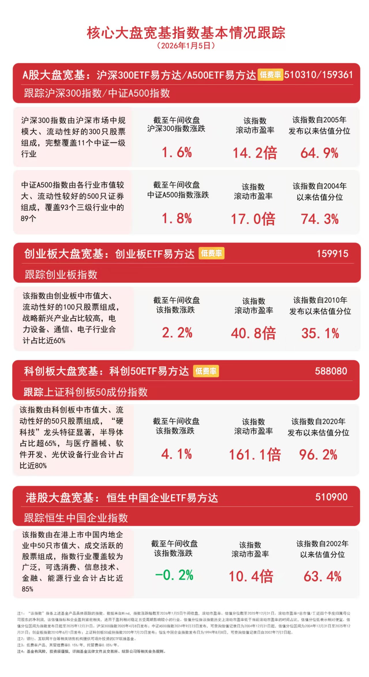 1月5日早盤(pán),A股三大指數(shù)集體上漲,滬指收復(fù)4000點(diǎn),全市場(chǎng)成交額約1.65萬(wàn)億元,較上日半天放量3240億元,超4000只個(gè)股飄紅。板塊題材上,腦機(jī)接口、保險(xiǎn)、半導(dǎo)體、商業(yè)航天、創(chuàng)新藥、游戲、有色金屬板塊漲幅居前,海南自貿(mào)區(qū)、旅游及酒店、銀行、跨境支付、豬肉板塊跌幅居前;港股沖高回落,創(chuàng)新藥板塊爆發(fā),科技股漲跌不一。截至午間收盤(pán),中證A500指數(shù)上漲1.8%,滬深300指數(shù)上漲1.6%,創(chuàng)業(yè)板指數(shù)上漲2.2%,上證科創(chuàng)板50成份指數(shù)上漲4.1%,恒生中國(guó)企業(yè)指數(shù)下跌0.2%。