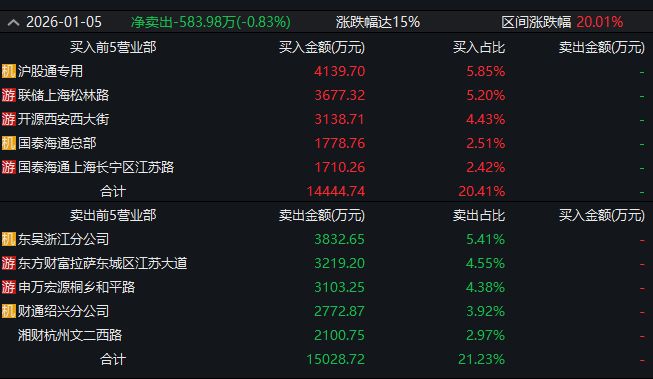 東吳證券蘇州相城大道證券營業(yè)部是頂級游資“余哥”的核心席位之一,其大額交易動向主要反映“余哥”的操作策略,是A股市場研究該游資動向的關(guān)鍵觀察窗口?!坝喔纭笔墙阗Y金的核心代表,該席位聚焦主線題材的絕對龍頭股,敢于重倉接力,擅長鎖倉做趨勢而非短線一日游,單次出手金額常達(dá)數(shù)億元級別。例如2025年12月,該席位在航天發(fā)展上完成“砸7億再買7億”的格局型操作,激活板塊情緒,完美體現(xiàn)“余哥”的操盤特征。