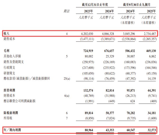 業(yè)績方面,報(bào)告期內(nèi),天下秀分別實(shí)現(xiàn)收入42.02億元、40.66億元和27.34億元。同期,公司年/期內(nèi)利潤分別為8096.4萬元、4335.3萬元和3257.3萬元。可以看出,天下秀2024年收入和利潤分別同比下滑了3.23%和46.45%;2025年前三季度,公司營收和利潤更是同比下滑了10.21%和46.2%,利潤同比幾乎“腰斬”。