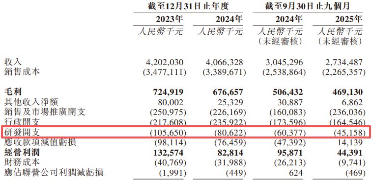 雖然天下秀稱要轉(zhuǎn)型為AI(人工智能)驅(qū)動(dòng)的科技集團(tuán),但數(shù)據(jù)顯示其研發(fā)開支在減少。2023年研發(fā)開支為1.06億元,2024年降至8062.2萬元;2025年前三季度為4515.8萬元,同比2024年同期的6037.7萬元又縮減了約25%。研發(fā)開支占總收入的比例從2022年的2.5%降至2025年前三季度的1.7%。這與公司宣稱的“推進(jìn)技術(shù)創(chuàng)新及AI融合”戰(zhàn)略似乎存在矛盾。
