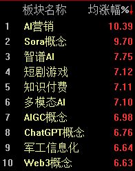 板塊方面,kimi概念、Sora概念、AI語料、智譜AI等漲幅居前,而草甘膦、采掘行業(yè)、石油行業(yè)等跌幅靠前。