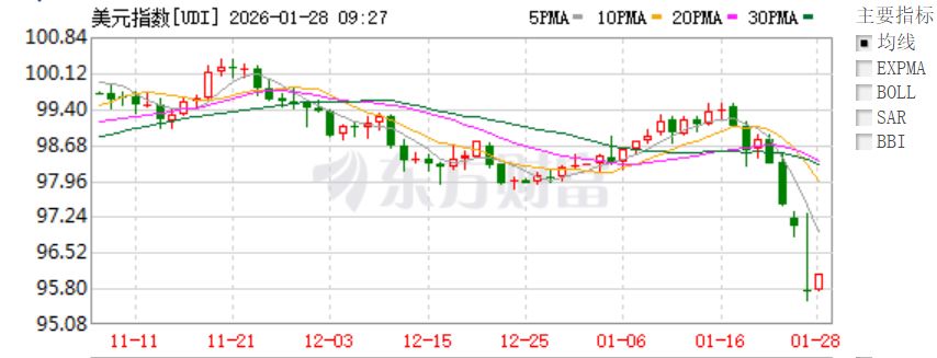 消息面上,當地時間1月27日,美元指數大幅下跌,并創(chuàng)近四年以來新低。當天美元兌日元、美元兌歐元等主要貨幣的匯率盤中均下跌超過1%。