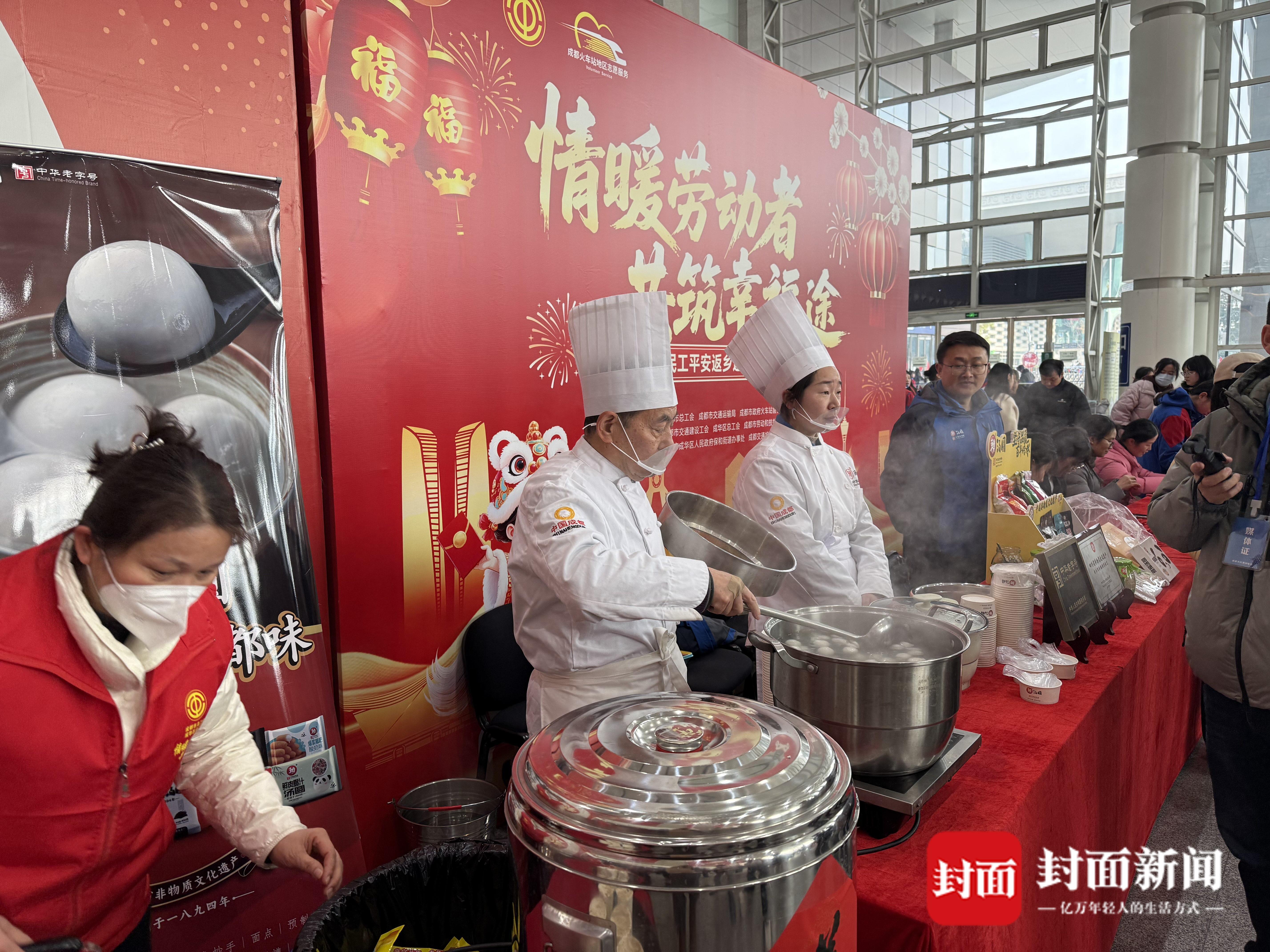 成都東站汽車客運站內向乘客提供免費湯圓