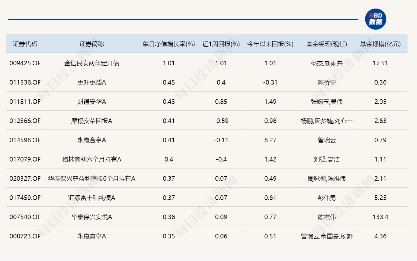 3.單日債基漲跌幅榜