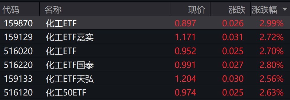 受盤(pán)面影響,化工相關(guān)ETF漲超2%。