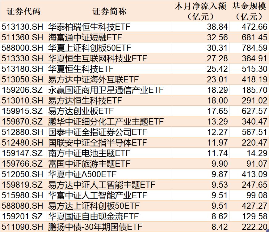 截至2月6日,本月資金凈流入額居前20的ETF名單如下: