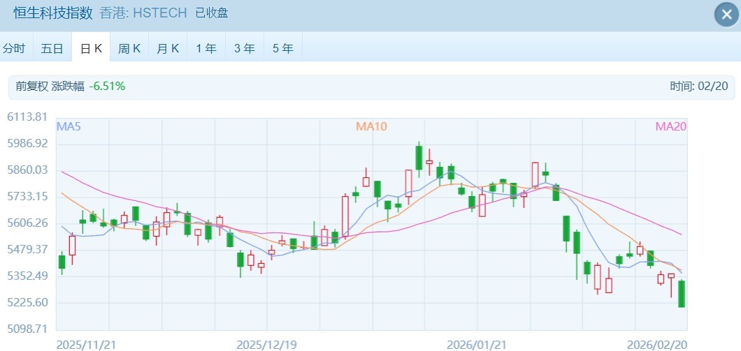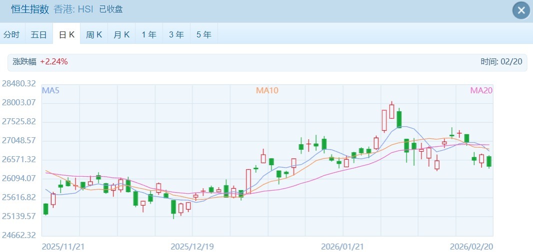 2026年2月20日,農(nóng)歷大年初四,港股迎來馬年首個(gè)交易日。市場未現(xiàn)預(yù)期中的“開門紅”,兩大核心指數(shù)集體低開震蕩。板塊呈現(xiàn)“冰火兩重天”態(tài)勢,AI應(yīng)用、機(jī)器人等新質(zhì)生產(chǎn)力相關(guān)賽道逆勢狂飆,而傳統(tǒng)互聯(lián)網(wǎng)、消費(fèi)板塊則遭遇資金獲利了結(jié),整體市場呈現(xiàn)結(jié)構(gòu)性行情特征。