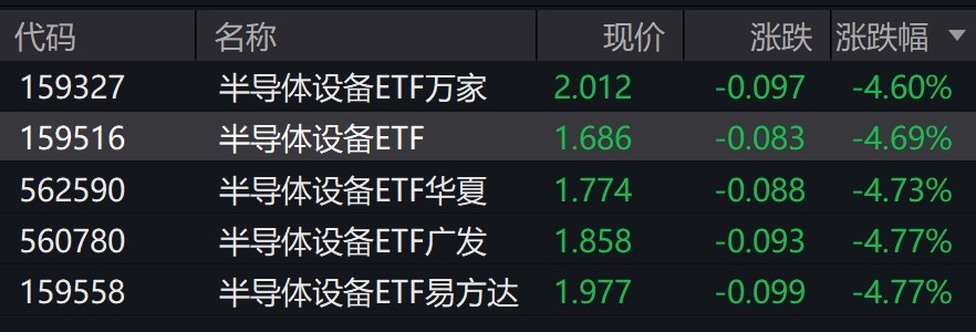 受盤面影響,半導(dǎo)體設(shè)備相關(guān)ETF跌超4%。