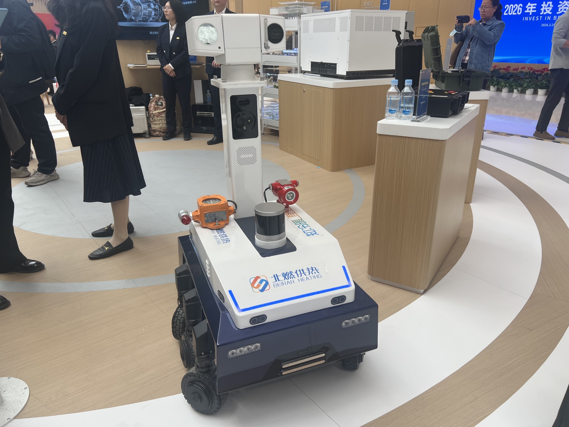 年會現(xiàn)場,北控集團(tuán)展位上,一臺六足巡檢機(jī)器人正在進(jìn)行工業(yè)場景落地的展示。工作人員向每經(jīng)記者介紹,這臺原型機(jī)由北控集團(tuán)與北京工業(yè)大學(xué)聯(lián)合研制,預(yù)計將在今年夏季投用?!傲喛梢詫崿F(xiàn)原地轉(zhuǎn),便于自主移動?!惫ぷ魅藛T介紹,“巡檢機(jī)器人有防爆功能,可以檢測到燃?xì)庑孤恫⑦M(jìn)行及時反饋,日常的巡檢工作,比如抄表,它可以到人到不了的地方?!?/p>