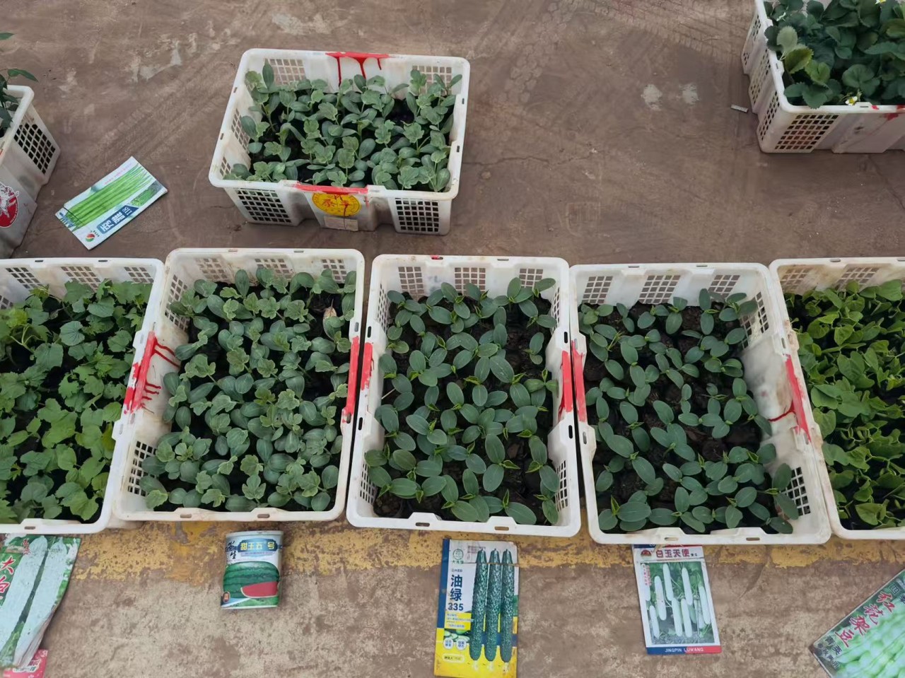 嚴(yán)俊華的攤位在中間,但她家的苗子好認(rèn)——葉子油亮,根系發(fā)達(dá),一看就是大棚精細(xì)育出來(lái)的。