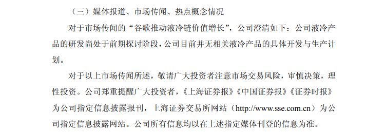 不過,針對這一市場傳聞,利通電子在公告中明確澄清:公司液冷產(chǎn)品的研發(fā)尚處于前期探討階段,公司目前并無相關(guān)液冷產(chǎn)品的具體開發(fā)與生產(chǎn)計劃。