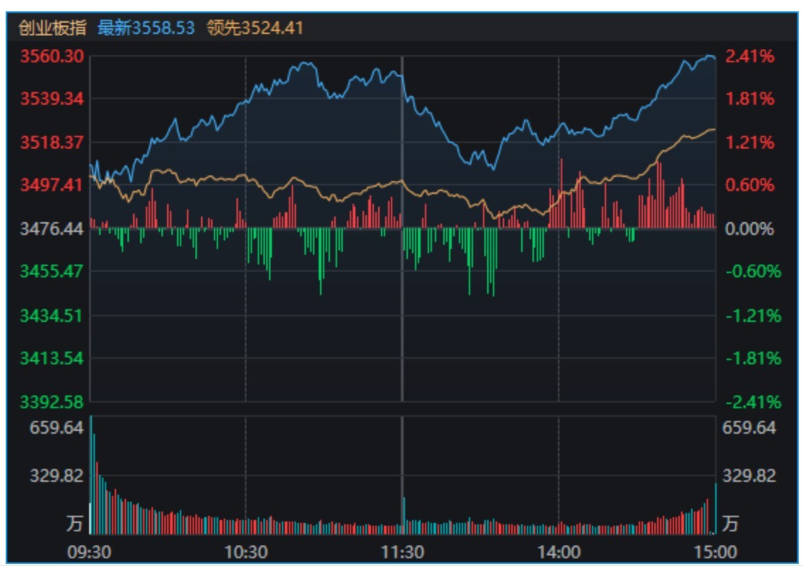 全市場(chǎng)超3700只個(gè)股上漲。滬深兩市成交額2.38萬億元,較上一個(gè)交易日放量2334億。