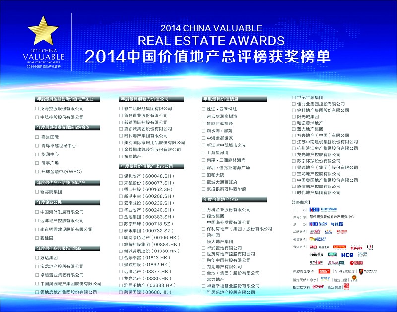 | 16:25-17:25 | 60′ | 2014中國價(jià)值地產(chǎn)總評榜榮譽(yù)盛典 | |