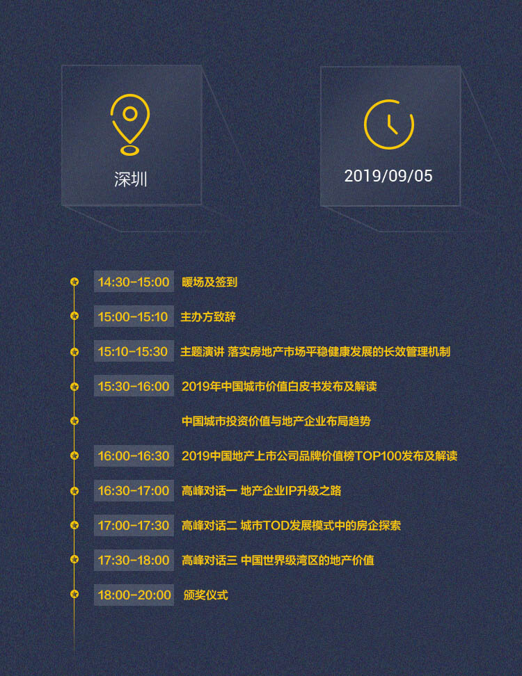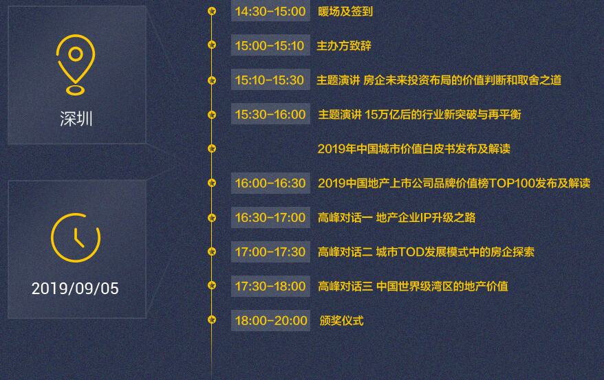 中國價(jià)值地產(chǎn)年會,由中國最具影響力的主流財(cái)經(jīng)全媒體平臺——每日經(jīng)濟(jì)新聞獨(dú)家主辦。年會誕生于2011年9月的上海,至今已在上海、廣州、杭州、蘇州、南京、成都等焦點(diǎn)城市成功舉辦過八屆。 今年,第九屆中國價(jià)值地產(chǎn)年會將來到美麗的海濱城市——深圳;今年,中國價(jià)值地產(chǎn)年會將全面升級,由三場主題演講和三場高峰對話組成;今年,我們不僅聚集了國內(nèi)優(yōu)秀的研究機(jī)構(gòu)和知名地產(chǎn)商,也首次與清華大學(xué)經(jīng)濟(jì)管理學(xué)院中國企業(yè)研究中心、每經(jīng)智庫聯(lián)合研究,由每日經(jīng)濟(jì)新聞、鎂刻地產(chǎn)共同發(fā)布2019中國地產(chǎn)上市公司品牌價(jià)值榜TOP100