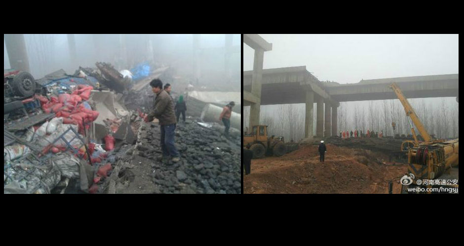 ·地點:河南連霍高速三門峽澠池段k741+900段的義昌大橋南半幅發(fā)生坍塌。